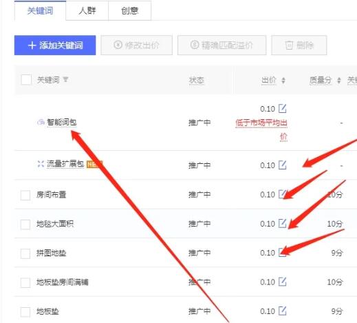1.系统选词,一般整体出价在0.3元左右,先把系统提供的智能词包开起来。