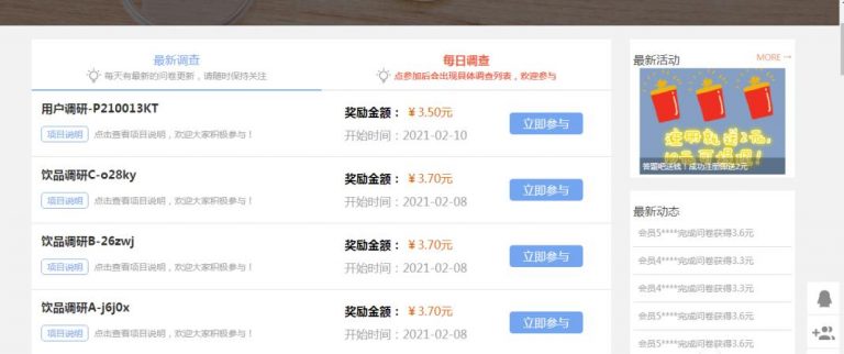 这是一个做市场调查的网站,一般任务都是帮忙回答下问卷调查之类的。