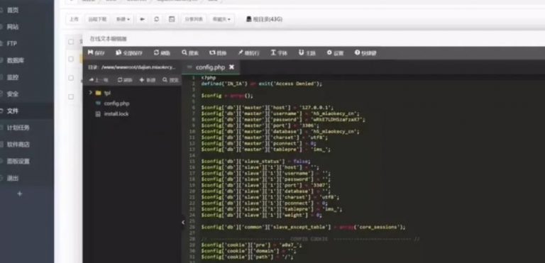 然后我们来到date文件夹,点进去找到数据库配置文件config.php文件,找到这个文件然后使用编辑打开,这里username是我们的数据库用户名,然后password是数据库密码,把这里的数据库对接成我们自己的数据库就可以了。