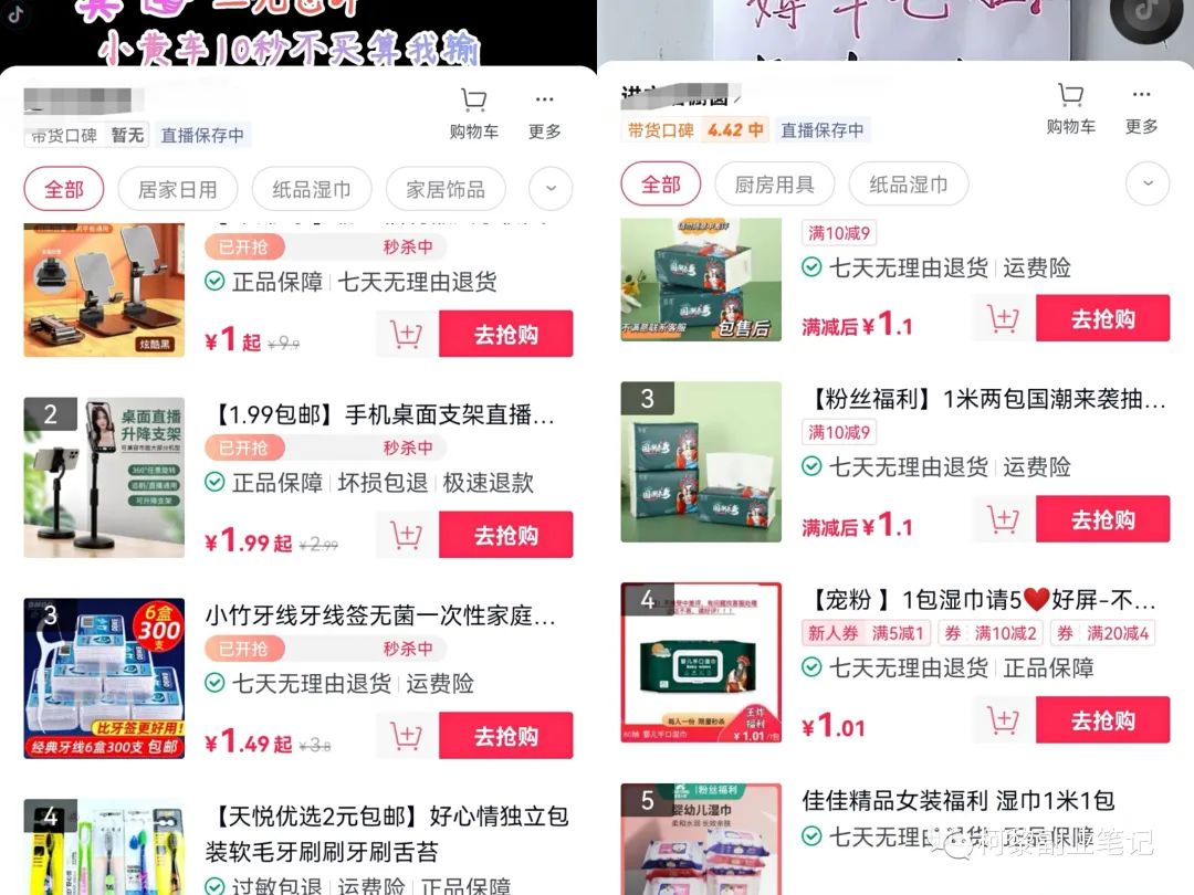 甚至连故事都不用编,直接痛击人们爱占便宜这个弱点,直接挂上全场两元的条幅,找个说话比较有煽动力的那种主播去讲解商品,把人们贪婪的本性激发出来,商品从直接去平台的精选联盟里选,选择那种外面的标价全是几毛钱,平时大家都用的上的吃喝用的小商品,挂上小黄车赚佣金就行了。