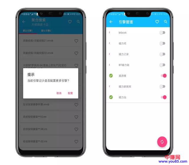 软件默认的搜索引擎只有两个,我们可以开启更多(一共有七个搜索引擎,建议都打开,这样可以得到更多更全面的资源搜索结果)