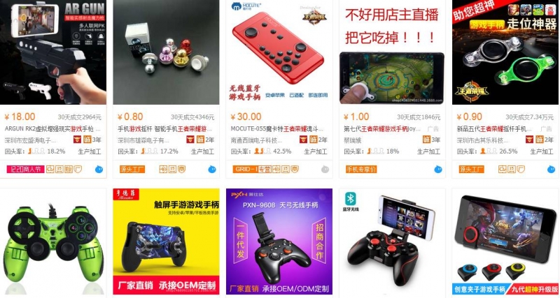 同样一款复杂点的手柄,mou宝都是一百多,阿里巴巴都是10—30元左右的价格,量大还能更优惠,排名前几的mou宝店都是两三千的销量,自己也可以算算一个月挣多少。