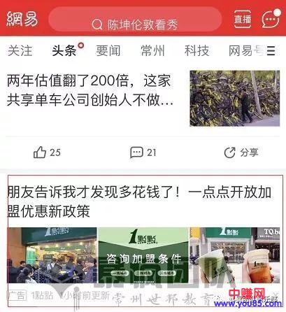 例如,下图网易新闻里面的一点点奶茶的广告,大家可能觉得是正规的,